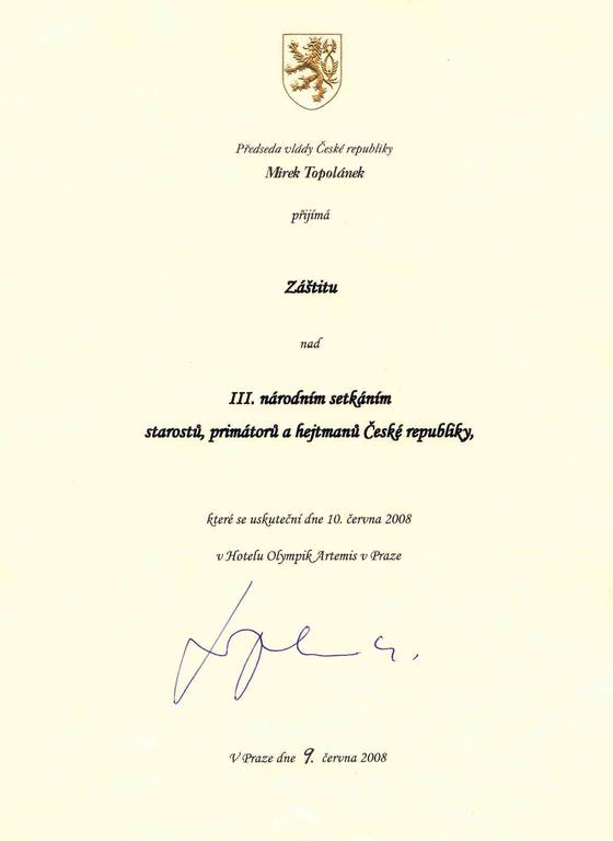 10. června 2008 - III. NÁRODNÍ SETKÁNÍ STAROSTŮ, PRIMÁTORŮ A HEJTMANŮ ČESKÉ REPUBLIKY