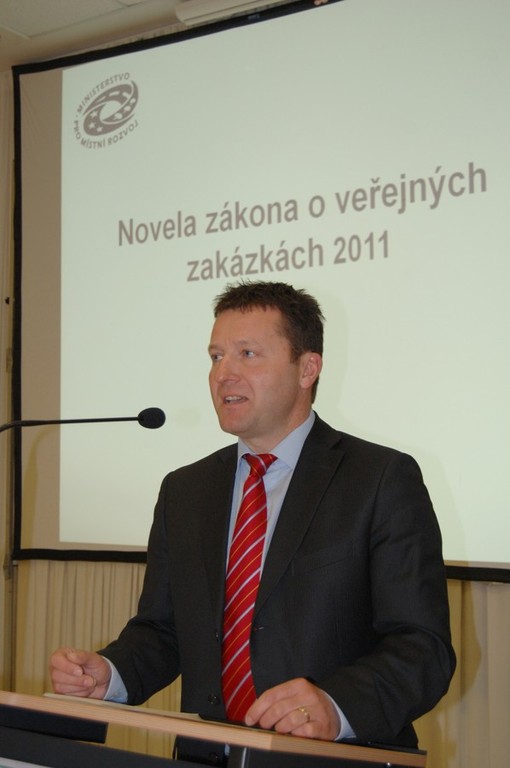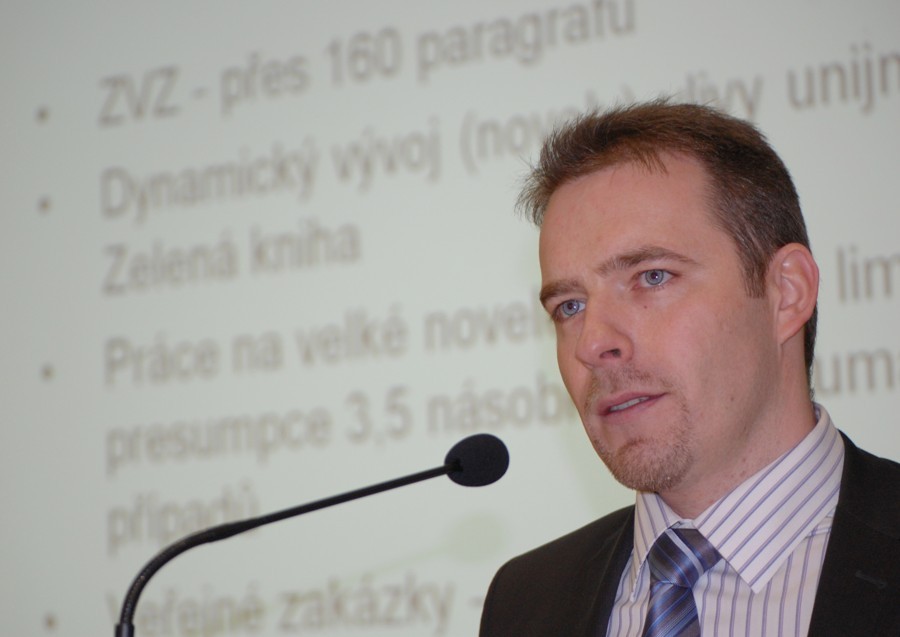 Druhý zásadní příspěvek přednesl p. Michal KOLÁČEK, náměstek ministra pro místní rozvoj. Informoval o připravovaných změnách zákona o veřejných zakázkách. Krátce se ohlédl do minulosti – zákony v tomto směru byly už za Rakouska – Uherska a také v meziválečném období. V současnosti se prostřednictvím veřejných zakázek realizují akce v hodnotě více než 600 mld. Kč. Hlavní navrhované změny v zákoně: snížení limitů pro veř. zakázku, zrušení losování, zamezení omezujících kvalifikačních požadavků, zamezení účasti na veř. zakázkách subjektům porušujících zákon, zrušení institutu důvěrných informací, zákaz změny smlouvy, možnost odstoupení od smlouvy, prohlášení o střetu zájmů, významné veř. zakázky schválit vládou či zastupitelstvem, panel expertů ad.