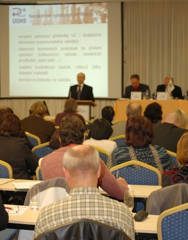 Z praktického pohledu řešených chybných veřejných zakázek se podíval na téma p. Kamil RUDOLECKÝ, místopředseda Úřadu pro ochranu hospodářské soutěže. V uplynulém období tento úřad vydal na 500 rozhodnutí. Mezi stále opakované závažné prohřešky patří především dělení zakázky na několik menších akcí, které samy o sobě nedosahují na limity veřejné zakázky. Upozornil na zažitou argumentaci, že obec rozdělila akci z důvodu hodnoty svého rozpočtu. Tento argument neopravňuje k podobnému postupu! Velmi často se stává, že původně zadaná, předpokládaná hodnota akce se v průběhu realizace dostane nad hranici veřejné zakázky a tím opět vznikne závažné pochybení. Bez uveřejnění zakázky lze postupovat pouze ve výjimečných případech, např. při realizaci uměleckého díla, kdy je předem znám jeho autor, z krajně naléhavých důvodů, u dodatečných stavebních prací, které však nesmí překročit limit 20 % celkového rozsahu stavby. Zcela nepřípustné jsou veřejné zakázky „šité na míru“ prostřednictvím nejrůznějších vymezení (např. stáří techniky, konkrétní značky materiálů či výrobců, regionální omezení, požadavky na formální úpravy dokumentů atd.) Velkým problémem je dodatečné upravování základních údajů zakázky. K tomuto tématu následovala velmi živá debata, zaznělo velké množství dotazů.