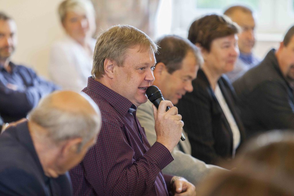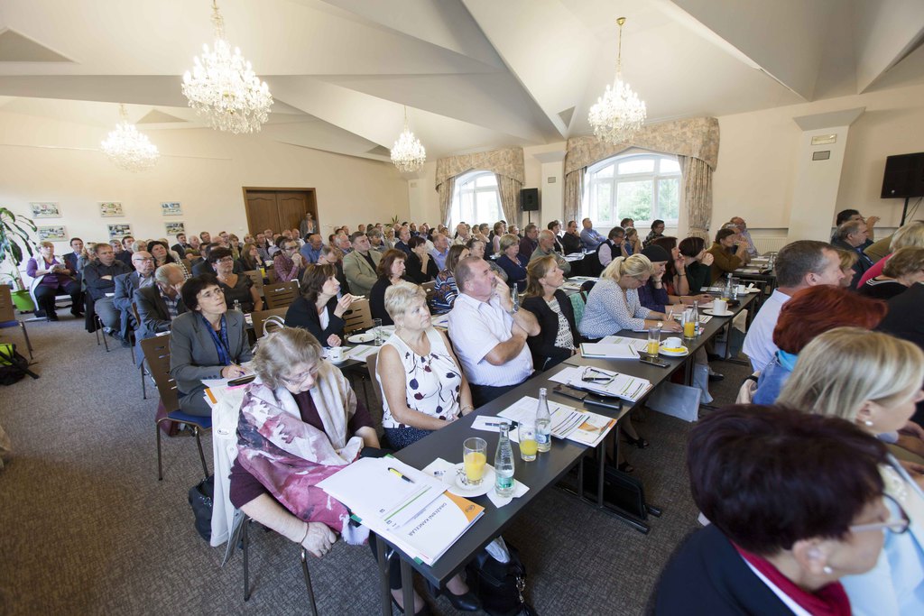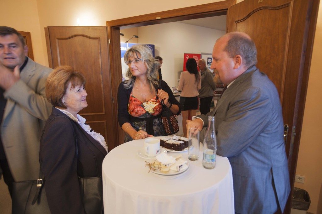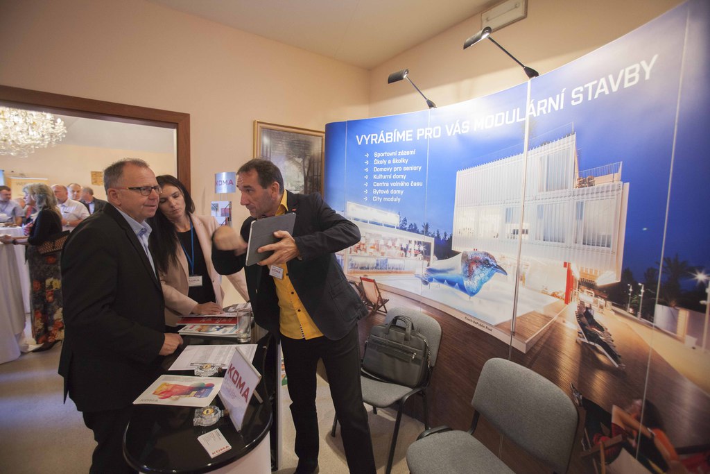 Přehled evropských a národních dotací pro města a obce přednesla p. Mgr. Karolína Doležalová, projektová manažerka v oblasti čerpání dotací a tvorby projektů. Na uvedenou tématiku se podívala především praktickým pohledem pracovnice městského úřadu a představitelky mikroregionu. Její rady a zkušenosti velmi zaujaly. Efektivní a transparentní zpeněžení obecního majetku veřejnou dražbou prezentoval p. Kamil Stupka ze společnosti DRAŽBYPROST, s.r.o. Podtrhl především zmíněnou transparentnost a obtížné zpochybňování prodejů uvedenou formou.Že odpady lze řešit i jinak přesvědčil posluchače p. Ing. Aleš Choutka, jednatel společnosti Archconsulting, garant projektu Obcejinak.cz. V rámci tohoto projektu společnost převezme za obce starosti s výběrovými řízeními na nejrůznější produkty a služby. Zajímavá obrazová prezentace společnosti KOMA MODULAR, s.r.o., s komentářem p. Karla Kolínského, ředitele tuzemského obchodu, ukázala možnosti využití modulárních staveb při řešení nedostatku kapacit školek a škol, zázemí pro různé zájmové organizace, sociální bydlení apod. Zástupce společnosti Cleerio, s.r.o., (dříve Geosense), p. Petr Pechánek, nabídl využití mobilních zařízení při správě a evidenci obecního majetku, od základních katastrálních údajů až po pasporty veřejného osvětlení a dalších inženýrských sítí. Chytré řešení snižování skládkovaného odpadu předvedl p. Roman Konečný, zástupce společnosti JRK BioWaste Management, s.r.o., největšího dodavatele plastových kompostérů. Na příkladech několika obcí dokumentoval úspěšnost dodávaného systému ECONIT.