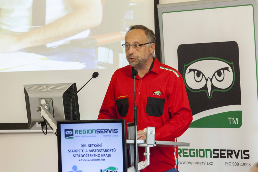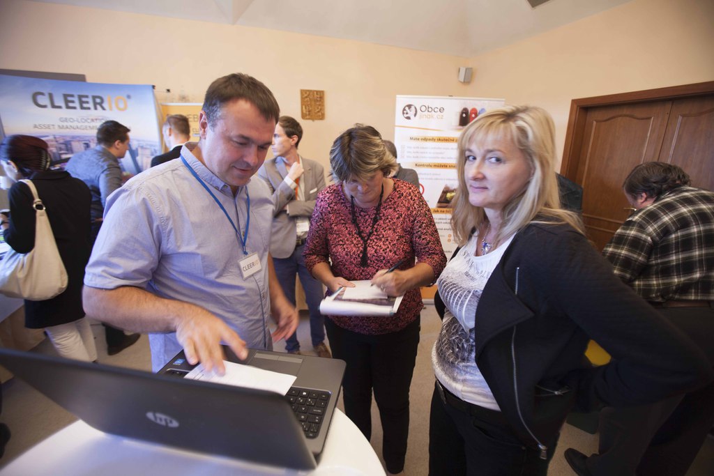 Zástupce ČSOB, a.s., p. Tomáš Pőzl, nabídl obcím aktuální chytrá řešení pro zlepšení mobility občanů, správy budov a energetiky. Ukázal zajímavé využití regionálních a ticketingových karet, připomněl moderní trendy využívání platebních terminálů na úřadech samosprávy. Nad otázkou: „Jak se lidé rozhodují?“ se zamyslel p. Martin Zemek, obchodní zástupce společnosti I-Tech Czech, s.r.o. Poukázal na neefektivní vynakládání úsilí a peněz při opravách dosluhujících, starých vozů komunální techniky a nabídl řešení pomocí nových univerzálních vozidel. Vyzval posluchače, aby se správně rozhodli…