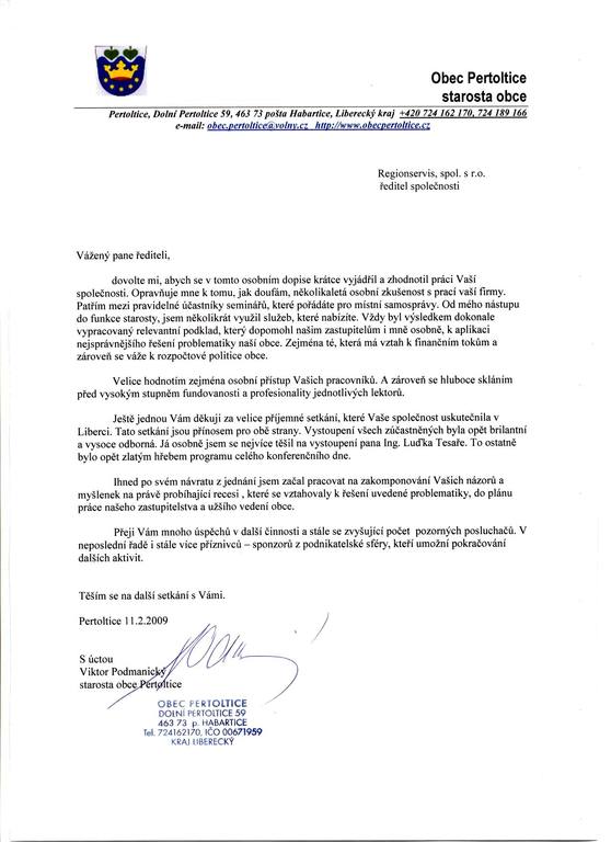 11. února 2009 Hodocení krajských setkání starostou obce Pertoltice