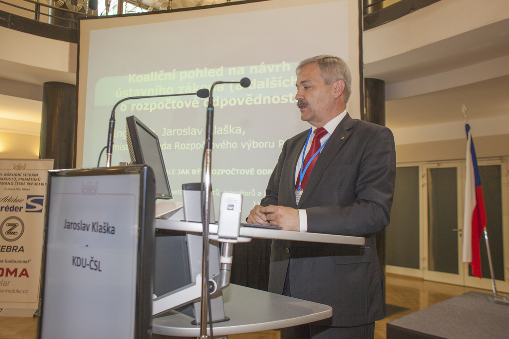 Právě k návrhu jeho hlavním zásadám se vyjadřovali zástupci Poslanecké sněmovny Parlamentu ČR – Václav Votava, místopředseda PS ČSSD a předseda rozpočtového výboru PSP ČR a jeho místopředseda pan Jaroslav Klaška, místopředseda PK KDU-ČSL. Ten hovořil o výdajovém pravidlu, proticykličnosti a o uvedl příklad, jak by to vypadalo, kdyby se navrhované pravidlo uplatňovalo už nyní. Jak a proč se nový zákon připravoval, z čeho se vycházelo a jaký je jeho smysl a účel přednesl náměstek ministra financí ze sekce Veřejných rozpočtů Jan Gregor. Zkušenosti s reálným působením tzv. finanční ústavy po necelém roce působení představil výkonný místopředseda slovenského Svazu měst a obcí (ZMOS) Josef Turčány. Na Slovensku, jak známo, bylo proti zákonu mnoho protestů a připomínek, ale nakonec jeho přijetí všichni starostové jednomyslně akceptovali, přičemž podmínky jsou tvrdší (50 % HDP). Jak pan místopředseda upozornil, finanční ústava se dotkne každého z nás, přičemž podstatné jsou výdaje, nikoliv výška dluhu.