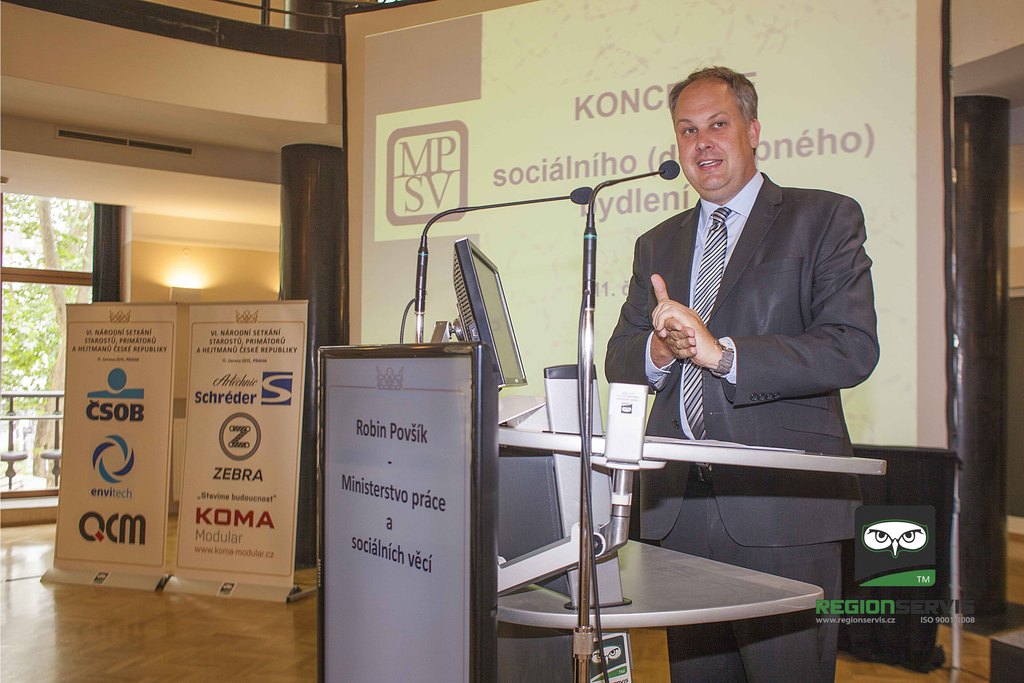Třetí, závěrečný blok byl věnován aktuálnímu tématu koncepce sociálního bydlení. Obce a města totiž budou v budoucnu mít za povinnost zabezpečit tuto formu bydlení a budou muset pro tyto účely mít vyčleněno 5 procent bytového fondu. Představu ministerstva přednesl náměstek ministryně práce a sociálních věcí Robin Povšík. Zdůraznil, že sociální bydlení by mělo být určeno především pro lidi, kteří celý život pracovali a odváděli daně, tedy by mělo pomoci lidem v hmotné nouzi, ale nemělo by podporovat zneužívání státního sociálního systému.